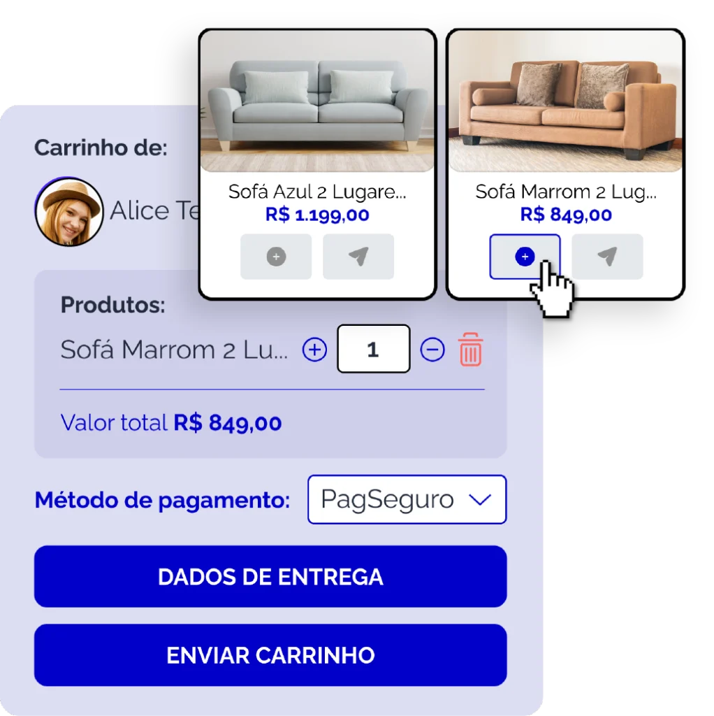Crie e envie o carrinho de produtos aos seus clientes e forneça o link de pagamento para que finalizem a compra